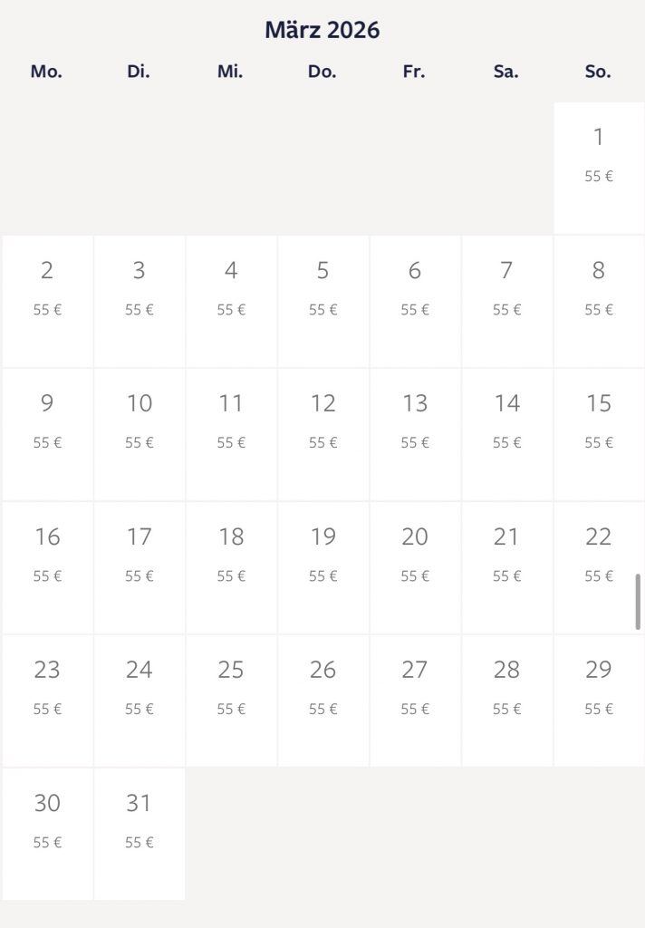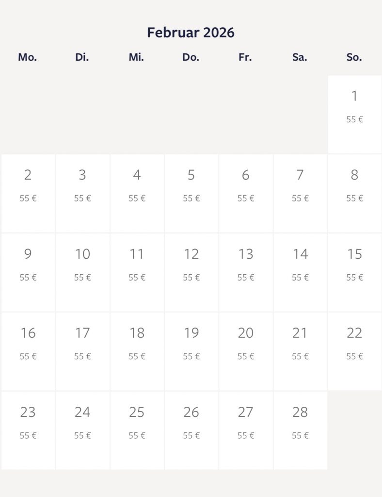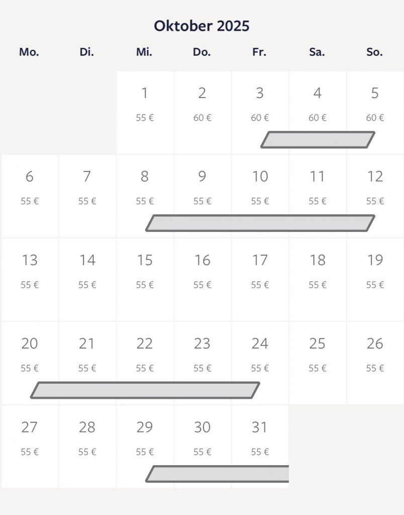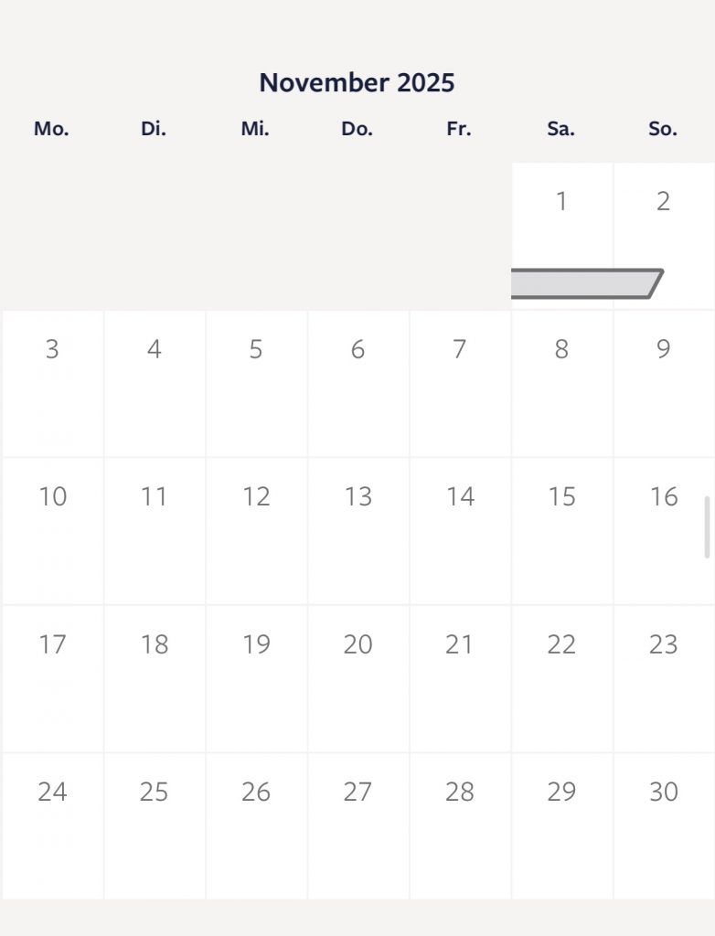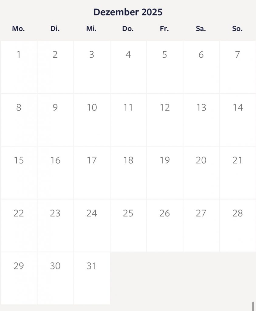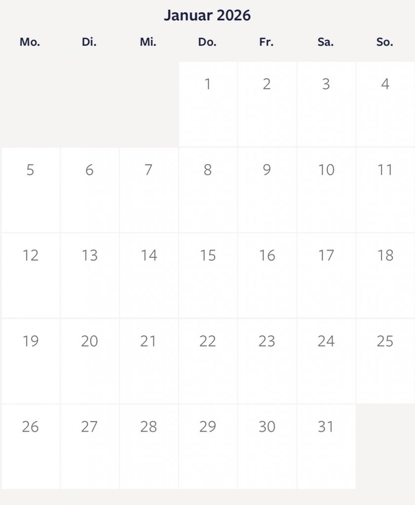 Gestrichene Tage (grau+grün) stehen nicht mehr zur Verfügung.